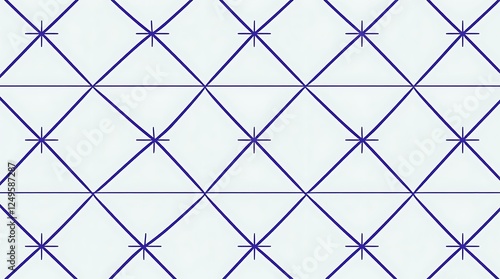 Fototapeta premium Geometric Blue and White Pattern: This seamless pattern features a classic blue and white geometric design, reminiscent of traditional tilework.