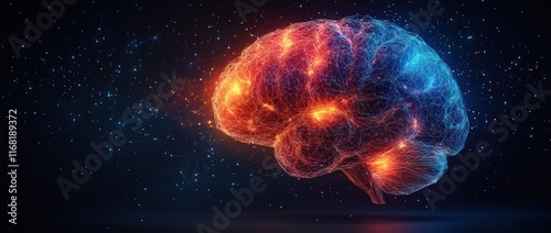 Fototapeta premium Geometric Brain Illustration in Low-Poly Art with Gradient Colors and Neural...