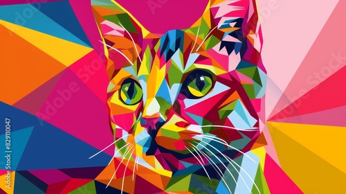 © Irina, Fototapeta premium Geometric cat with different colors decoration wallpaper background