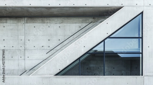 Obraz premium Geometric Concrete Architecture with Triangular Window and Escalator