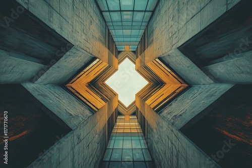 © jambulart, Obraz premium Geometric concrete structure, skylight, upward view.