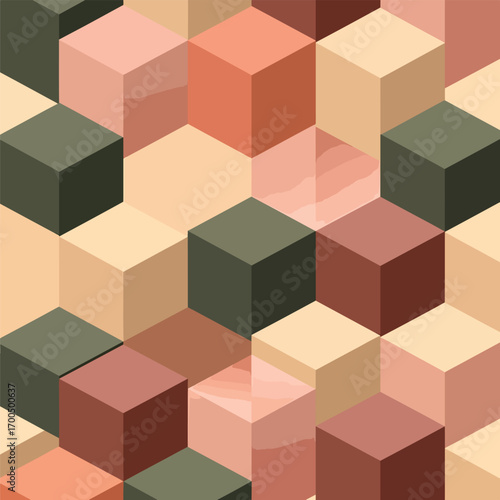 Fototapeta premium Geometric cube pattern with earthy tones creating a modern abstract background, seamless pattern, royalty stock.