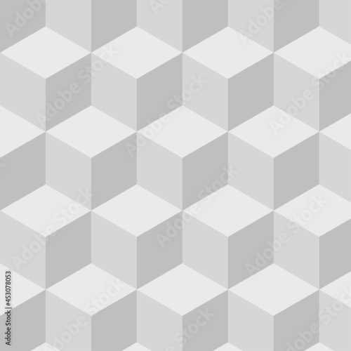 © Yulitsa, Obraz premium Geometric cube seamless pattern. Repeating gray background