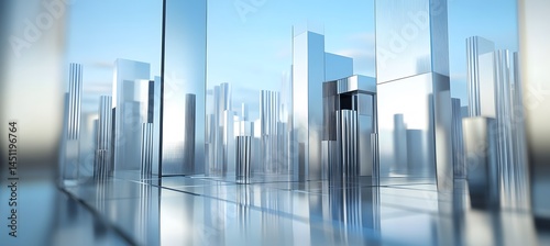 Obraz premium Geometric 3D architecture scene with metallic elements showing future city...