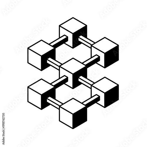 © Omah, Obraz premium Geometric 3D Cubes Connected by Bars Forming a Cluster.