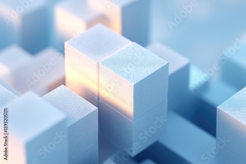 Fototapeta premium geometric 3d-rendered abstract structure composed of interlocking cubes soft...