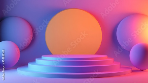 Obraz premium Geometric 3D rendering of a colorful podium with a circular background,...