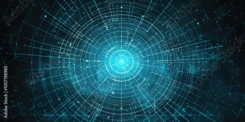 © Vii, Fototapeta premium Geometric design featuring blue and black lines and dots on a textured background