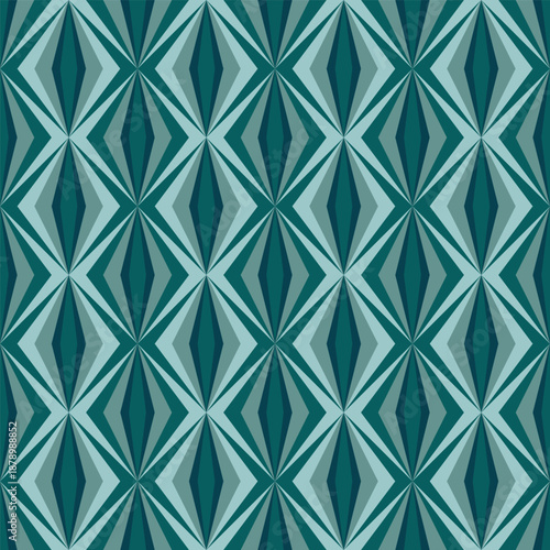 © JihanFahri, Fototapeta premium Geometric Diamond Shape Seamless Pattern in Shades of Blue Green Color