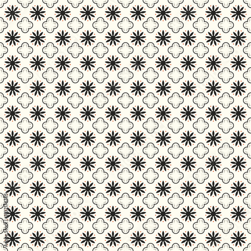 © OVAVO, Obraz premium Geometric Floral Pattern on Cream Background