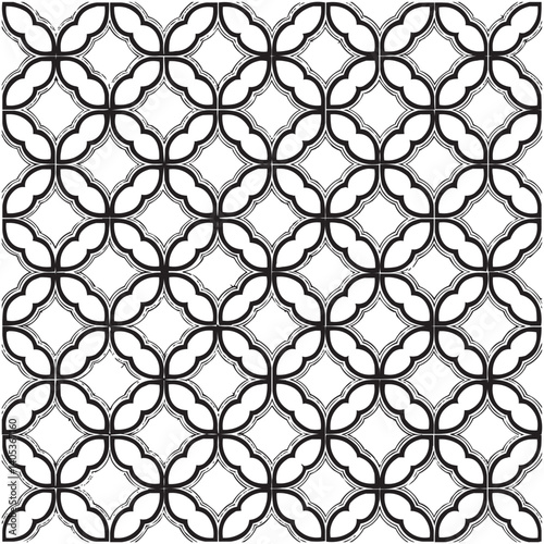 Fototapeta premium Geometric Floral Tile Pattern. Seamless Black and White Abstract Background, Vector geometric monochrome seamless pattern with curved shapes