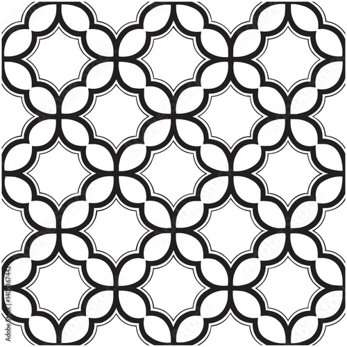 © Graphix Glider, Fototapeta premium Geometric Floral Tile Pattern. Seamless Black and White Abstract Background, Vector geometric monochrome seamless pattern with curved shapes