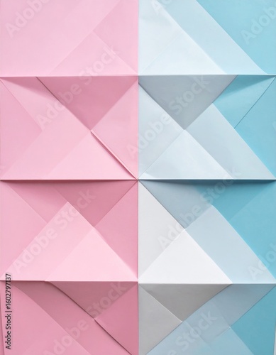 Obraz premium Geometric Folded Paper Design in Pastel Pink and Blue with Triangle Shapes