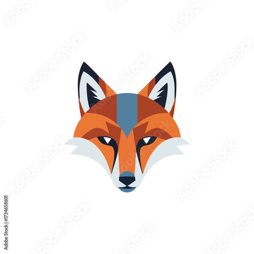 © chriesenda, Obraz premium Geometric fox head with orange, white, and blue colors.