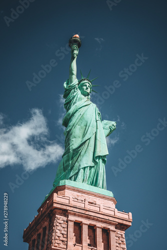 © Paulo Storch, Fototapeta premium Geometric Front View of the Statue of Liberty with cloud on blue sky background