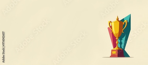 © shadowart, Fototapeta premium Geometric gold cup on pastel beige background. Futuristic golden Melbourne Cup trophy. Handicap sports competitions. Polygonal, low poly style. Minimalistic design for banner with copy space.