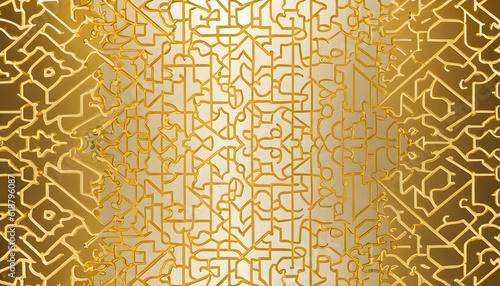 Fototapeta premium Geometric golden Arabic golden line pattern wallpaper , background derived a ‘jigsaw’ puzzle design. AI Generated