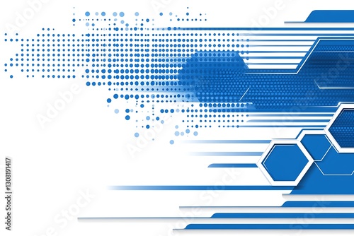 © Kiki, Obraz premium Geometric gradient background with blue halftone and hexagon shapes