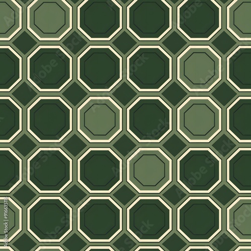 © QITIAN, Obraz premium Geometric green pattern featuring octagonal shapes on a textured background.