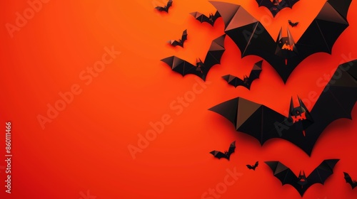 © Cloudyew, Naklejka premium Geometric Halloween Background with Clean Bat Designs