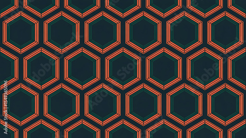 © reptileu, Obraz premium Geometric hexagons in dark navy and rust. Repeating pattern.