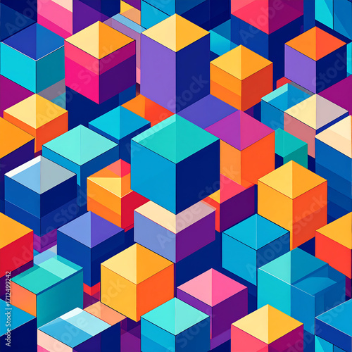 © Faza Art01, Obraz premium Geometric isometric cube design in a flat minimal style, using vibrant