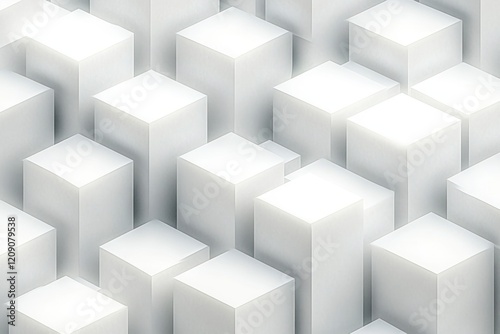 © k, Obraz premium Geometric Minimalist 3D White Cube Composition Stark Lighting High Contrast