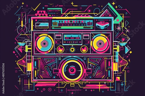 Obraz premium Geometric Neon Boombox with Abstract Elements