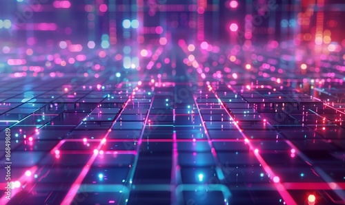 © peppastocker, Fototapeta premium Geometric neon grids