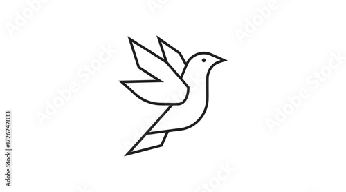 © ZiletterId, Fototapeta premium Geometric outline bird flying with spread wings flat illustration