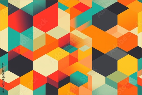 Obraz premium Geometric, overlapped triangles, hexagons & diamonds pattern creating chaos.