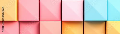 Obraz premium Geometric pastel blocks arranged in vibrant composition, showcasing soft...