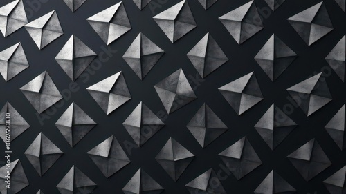 Fototapeta premium Geometric pattern of overlapping abstract metal shapes on dark background,...