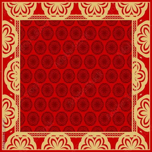 © Bonya Sharp Claw, Obraz premium Geometric Pattern with hand-drawing floral ornament. illustration. For fabric, textile, bandana.