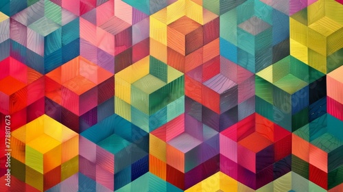 © ktianngoen0128, Naklejka premium Geometric pattern with isometric cubes, creating depth and perspective