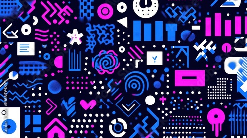 Fototapeta premium Geometric pattern with modern shapes in blue and pink tones