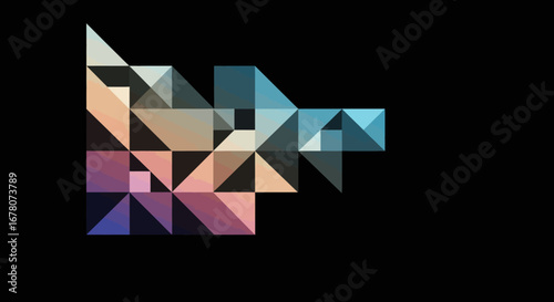Fototapeta premium Geometric pattern with triangles in shades of purple orange and blue on a black background