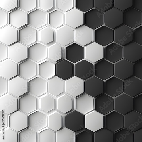 Fototapeta premium Geometric patterns create an intriguing visual with hexagonal tiles in black and white
