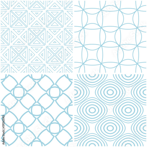 Fototapeta premium Geometric patterns. Set of blue elements on white. Seamless backgrounds