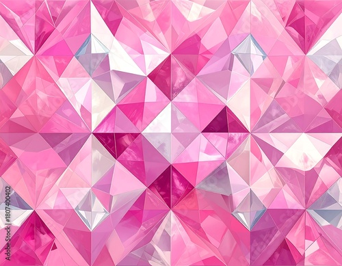 © Denabis, Obraz premium Geometric pink gemstone facets reflect light creating a dazzling background.