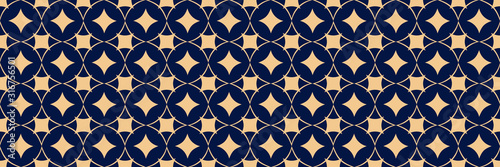 © Liudmyla, Naklejka premium Geometric print. Golden pattern on long dark blue seamless background