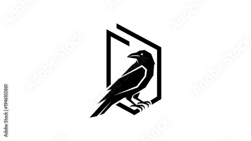 © Denis, Fototapeta premium Geometric raven silhouette with abstract frame design