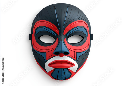 Naklejka premium Geometric Red and Blue Mask on White Background