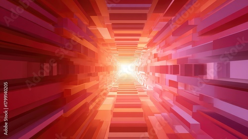© PikePicture, Fototapeta premium Geometric red light tunnel leading to bright future