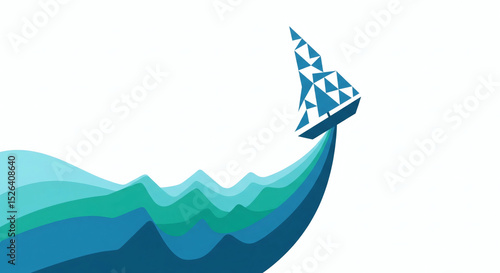 Naklejka premium Geometric Sailboat Navigating Abstract Waves - Journey and Progress Concept