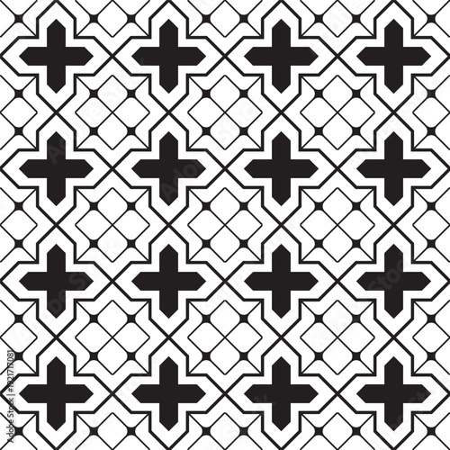 © JihanFahri, Obraz premium Geometric Seamless Cross Tile Pattern Black and White Background Repeat
