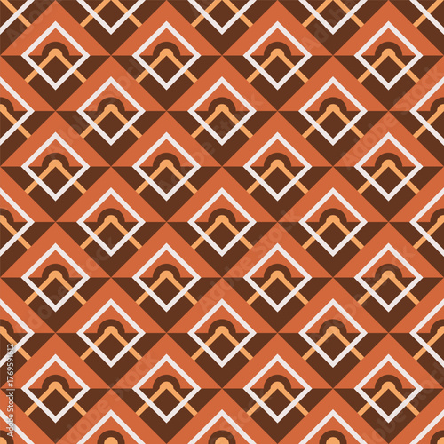 © JihanFahri, Fototapeta premium Geometric Seamless Diamond Tile Pattern Warm Color Detailed Textile Design