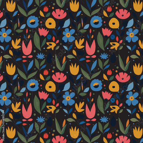 Fototapeta premium Geometric Seamless floral pattern vector background with Scandinavian...