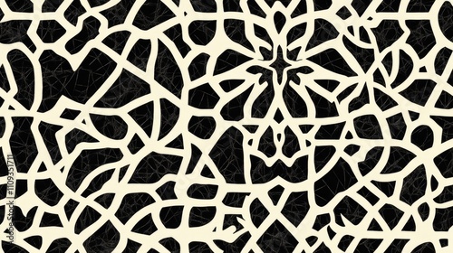© NeuralNiche, Obraz premium Geometric seamless pattern design featuring intricate lines and motifs for fabric or wallpaper applications