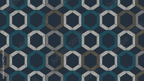 Fototapeta premium Geometric Seamless Pattern of Hexagons in Tones of Blue and Gray for Background
